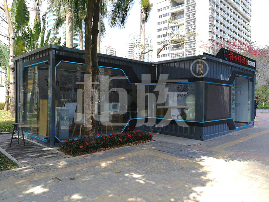 The post station is made of two containers in tandem, and the front wall is made of large area of glass doors and Windows, with smooth lines, sharp edges and corners, fashionable shapes, transparent and bright, which well highlights the symbolic and open features of the post station.