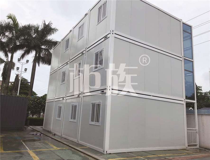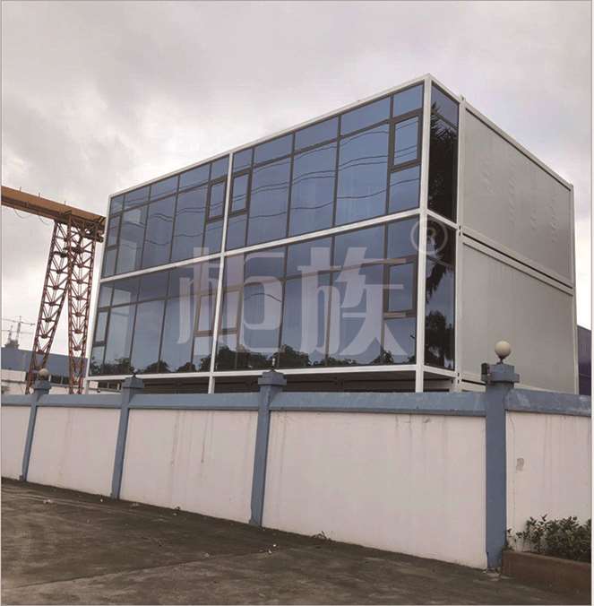 該打包箱辦公室上下三層,在設計上注重功能的實用性和選材用材的環(huán)保性??傮w約可容納50人的辦公和會議需求。